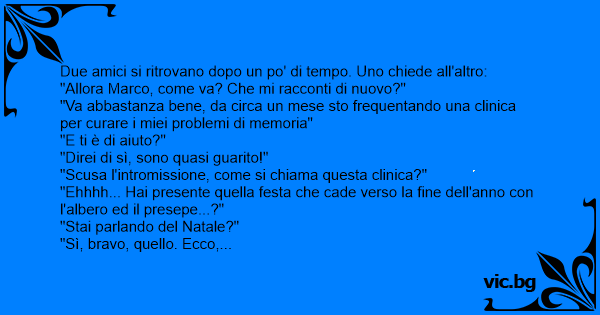 Due amici si ritrovano dopo un po' di tempo. Uno chiede all'altro: