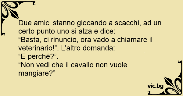 Due amici stanno giocando a scacchi, ad un certo punto uno si alza e dice: