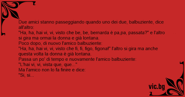 "Ha, ha, hai vi, vi, visto che be, be, bernarda è pa,pa, passata?" e l'altro si gira ma ormai la donna e già lontana.