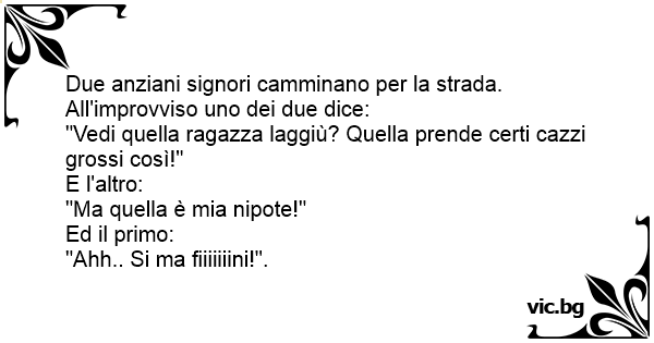 Due anziani signori camminano per la strada. All'improvviso uno dei due dice: