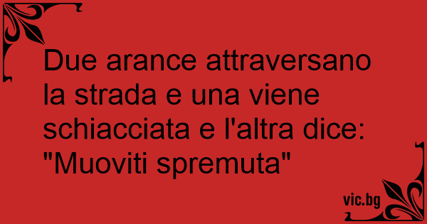 Due arance attraversano la strada e una viene schiacciata e l'altra dice: