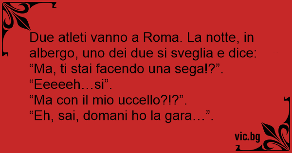 Due atleti vanno a Roma. La notte, in albergo, uno dei due si sveglia e dice: