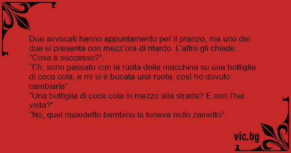 Due avvocati hanno appuntamento per il pranzo, ma uno dei due si presenta соn mezz’ora di ritardo. L’altro gli chiede: