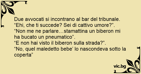 Due avvocati si incontrano al bar del tribunale. “Ehi, che ti succede? Sei di cattivo umore?”.