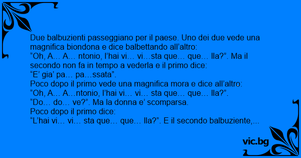 Due balbuzienti passeggiano per il paese. Uno dei due vede una magnifica biondona e dice balbettando all’altro: