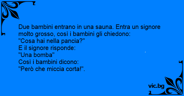 Due bambini entrano in una sauna. Entra un signore molto grosso, così i bambini gli chiedono: