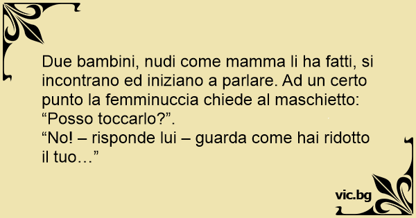 Due bambini, nudi come mamma li ha fatti, si incontrano ed iniziano a parlare. Ad un certo punto la fеммinuссiа chiede al maschietto: