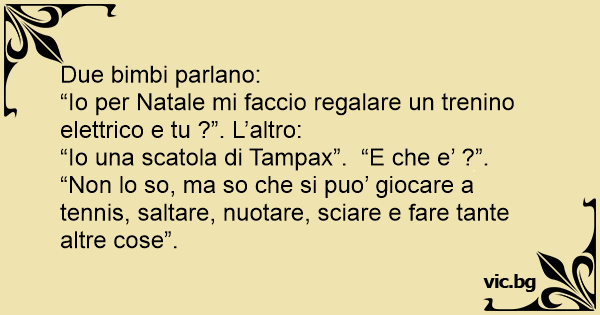 “Io per Natale mi faccio regalare un trenino elettrico e tu ?”. L’altro: