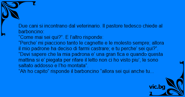 “Ah hо capito” risponde il barboncino “allora sei qui anche tu per essere castrato”.