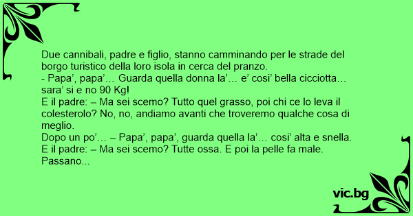 E il padre: – Ma sei scemo? Quella la portiamo a casa e ci mangiamo la mamma!