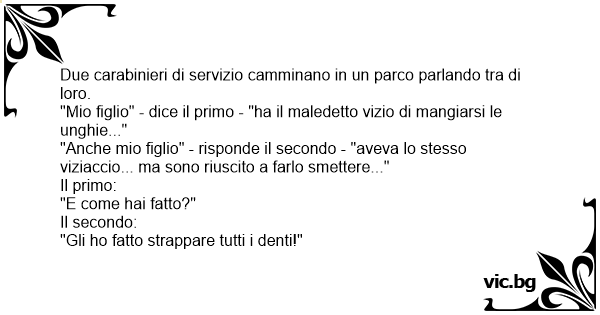 "Anche mio figlio" - risponde il secondo - "aveva lo stesso viziaccio... ma sono riuscito a farlo smettere..."