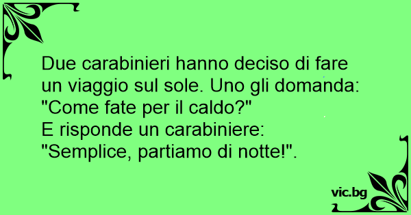 Due carabinieri hanno deciso di fare un viaggio sul sole. Uno gli domanda: