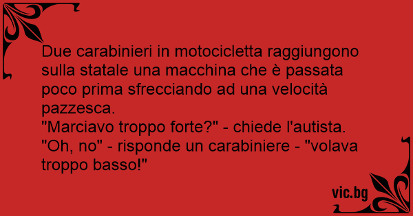 "Oh, no" - risponde un carabiniere - "volava troppo basso!"