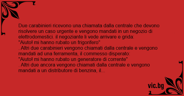 Due carabinieri ricevono una chiamata dalla centrale che devono risolvere un caso urgente e vengono mandati in un negozio di elettrodomestici. il negoziante li vede arrivare e grida: