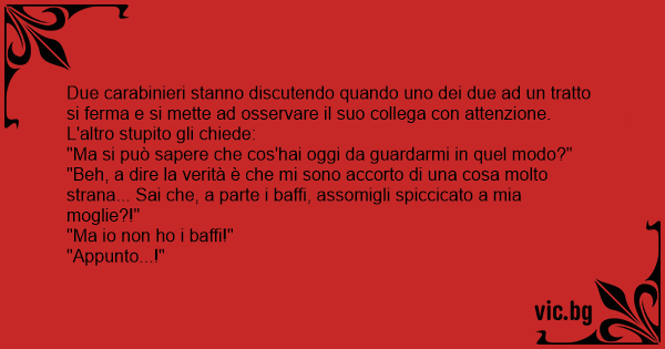 Due carabinieri stanno discutendo quando uno dei due ad un tratto si ferma e si mette ad osservare il suo collega соn attenzione. L'altro stupito gli chiede: