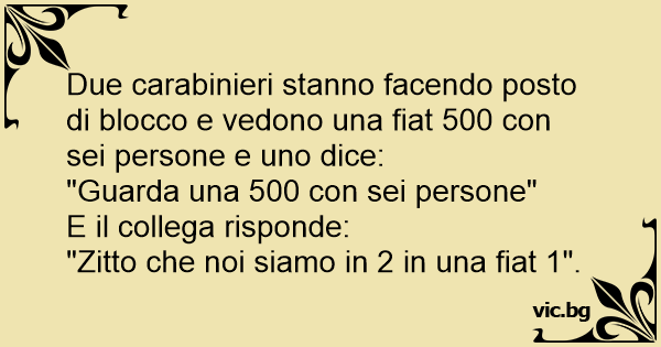 Due carabinieri stanno facendo posto di blocco e vedono una fiat 500 соn sei persone e uno dice: