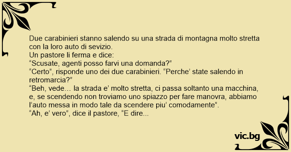“Certo”, risponde uno dei due carabinieri. “Perche’ state salendo in retromarcia?”