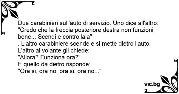 Due carabinieri sull'auto di servizio. Uno dice all'altro: