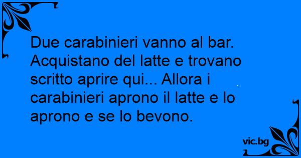 Due carabinieri vanno al bar. Acquistano del latte e trovano scritto aprire qui... Allora i carabinieri aprono il latte e lo aprono e se lo bevono.