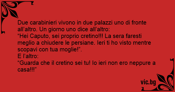 Due carabinieri vivono in due palazzi uno di fronte all’altro. Un giorno uno dice all’altro:
