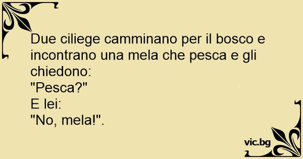 Due ciliege camminano per il bosco e incontrano una mela che pesca e gli chiedono: