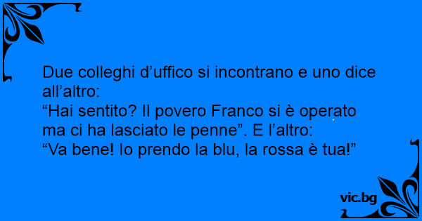 Due colleghi d’uffico si incontrano e uno dice all’altro: