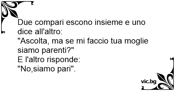 "Ascolta, ma se mi faccio tua moglie siamo parenti?"
