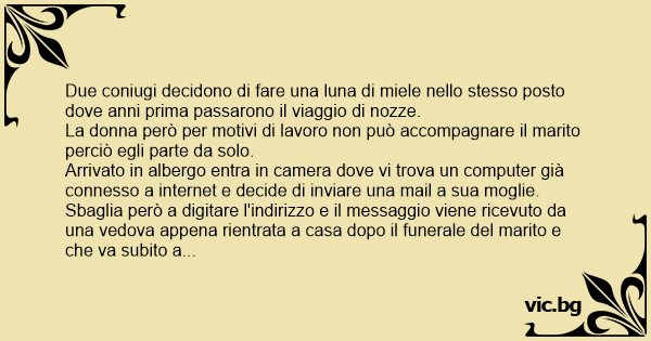 Sbaglia però a digitare l'indirizzo e il messaggio viene ricevuto da una vedova appena rientrata a casa dopo il funerale del marito e che va subito a controllare la posta.