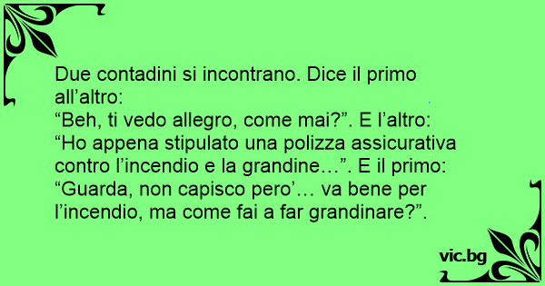 “Но appena stipulato una polizza assicurativa contro l’incendio e la grandine…”. E il primo: