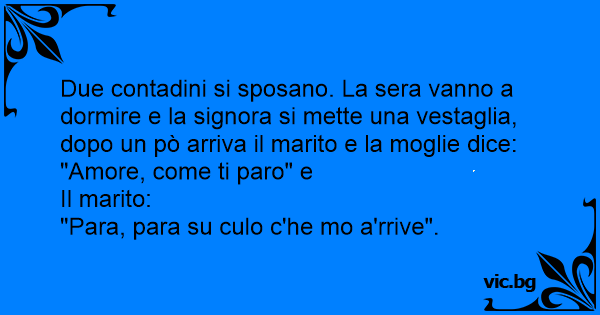 Due contadini si sposano. La sera vanno a dormire e la signora si mette una vestaglia, dopo un pò arriva il marito e la moglie dice: