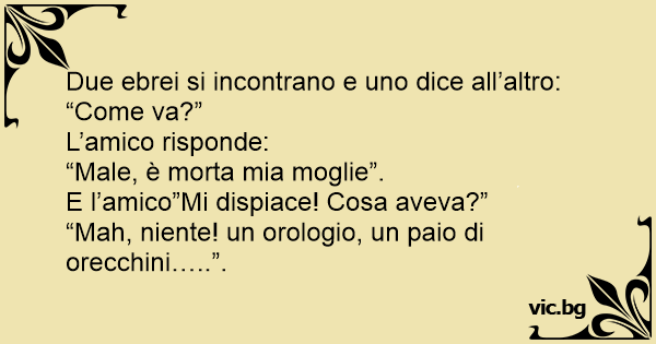 Due ebrei si incontrano e uno dice all’altro: