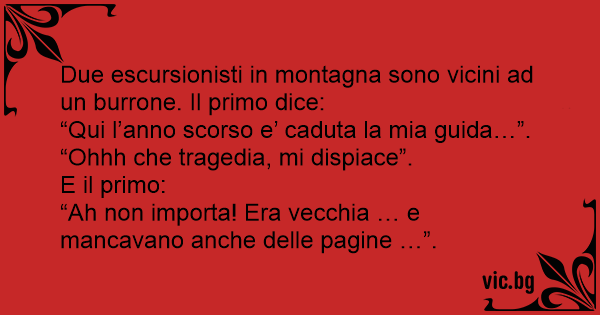 Due escursionisti in montagna sono vicini ad un burrone. Il primo dice: