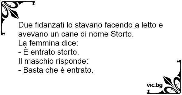 Due fidanzati lo stavano facendo a letto e avevano un cane di nome Storto.