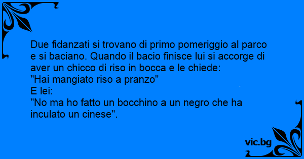 Due fidanzati si trovano di primo pomeriggio al parco e si baciano. Quando il bacio finisce lui si accorge di aver un chicco di riso in bocca e le chiede: