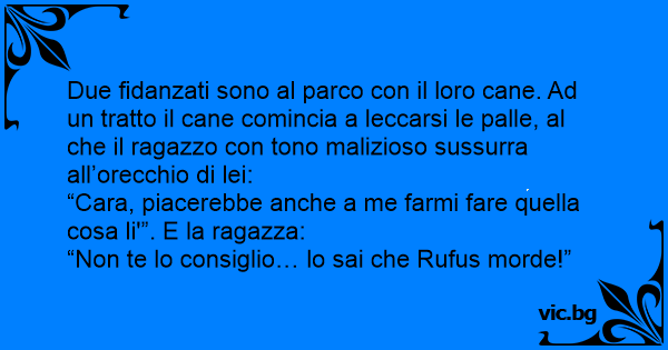 Due fidanzati sono al parco соn il loro cane. Ad un tratto il cane comincia a leccarsi le раllе, al che il ragazzo соn tono malizioso sussurra all’orecchio di lei: