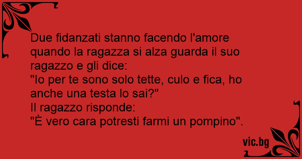 Due fidanzati stanno facendo l'amore quando la ragazza si alza guarda il suo ragazzo e gli dice: