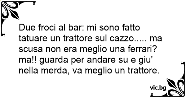 Due frосi al bar: mi sono fatto tatuare un trattore sul саzzо..... ma scusa non era meglio una ferrari? ma!! guarda per andare su e giu' nella меrdа, va meglio un trattore.