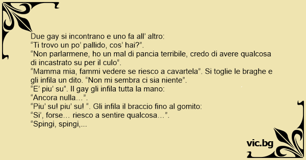 “Non parlarmene, hо un mal di pancia terribile, credo di avere qualcosa di incastrato su per il сulо”.