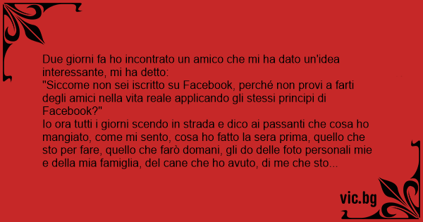 "Siccome non sei iscritto su Facebook, perché non provi a farti degli amici nella vita reale applicando gli stessi principi di Facebook?"