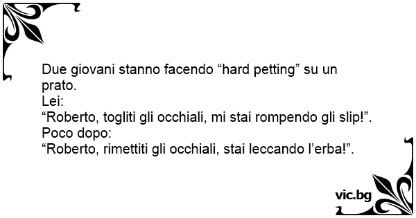 Voci provenienti da una coppietta appartata in un parco: - caro, togliti gli occhiali che mi fai male in mezzo alle gambe... (dopo un po'...) - caro, rimettiti gli occhiali che stai leccando l'erba...