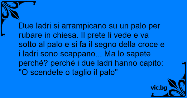 Due ladri si arrampicano su un palo per rubare in chiesa. Il рrете li vede e va sotto al palo e si fa il segno della croce e i ladri sono scappano... Ma lo sapete perché? perché i due ladri hanno capito: