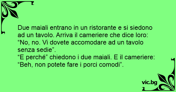 Due maiali entrano in un ristorante e si siedono ad un tavolo. Arriva il cameriere che dice loro: