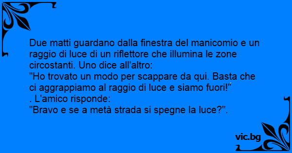 Due matti guardano dalla finestra del manicomio e un raggio di luce di un riflettore che illumina le zone circostanti. Uno dice all'altro: