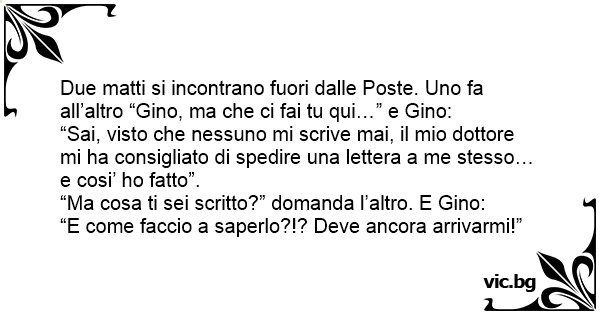 Due matti si incontrano fuori dalle Poste. Uno fa all’altro “Gino, ma che ci fai tu qui…” e Gino: