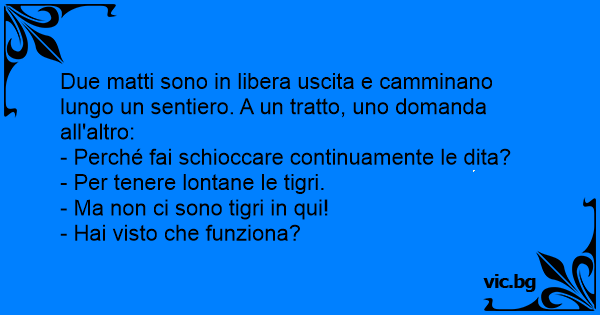 Due matti sono in libera uscita e camminano lungo un sentiero. A un tratto, uno domanda all'altro: