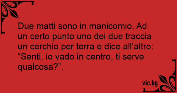 Due matti sono in manicomio. Ad un certo punto uno dei due traccia un cerchio per terra e dice all’altro: