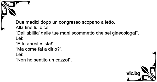 “Dall’abilita’ delle tue mani scommetto che sei ginecologa!”.