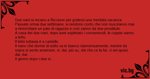 Il nano che dorme di sotto va in bianco clamorosamente, mentre da sopra si sente ansimare, si, dai, più su, dai che ce la fai, ci sei quasi, dai, dai……