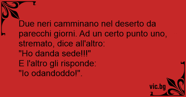 Due neri camminano nel deserto da parecchi giorni. Ad un certo punto uno, stremato, dice all'altro: