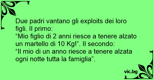 “Mio figlio di 2 anni riesce a tenere alzato un martello di 10 Kg!”. Il secondo: